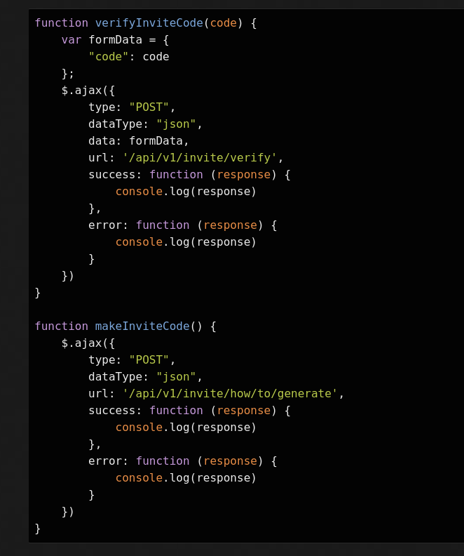 In order to generate the invite code, make a POST request to /api/v1/invite/generate