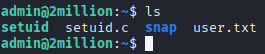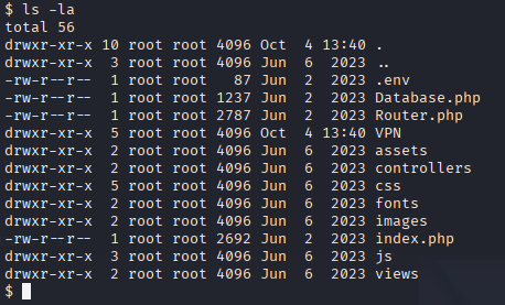 Je remarque immédiatement un fichier .env. En le lisant j'obtiens le mot de passe d'un utilisateur admin. Je tente une connexion SSH avec ces identifiants — ça fonctionne. J'obtiens le premier flag :